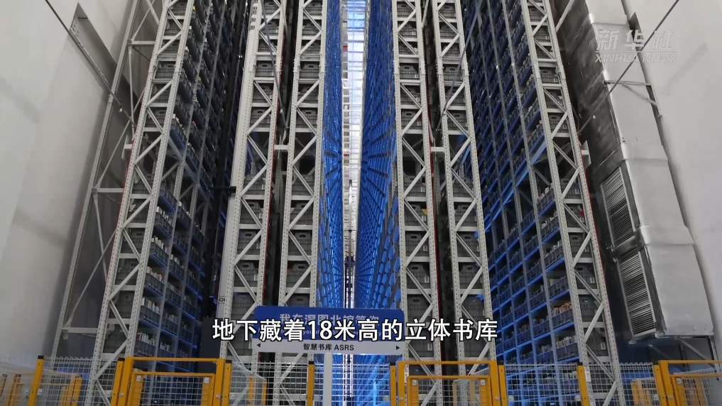 在深圳龙华,有一座图书馆。地上是安静的阅读区,地下藏着18米高的立体书库。七万多个灰色书箱,存放着四百多万册图书。机械臂在钢架间上下穿梭,从读者下单到书送出,最快只要十分钟。