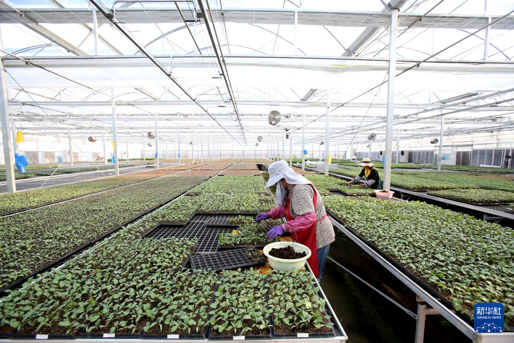 3月29日,农户在浙江杭州“谢径安”农创村育苗车间工作。新华社记者 程丽 摄