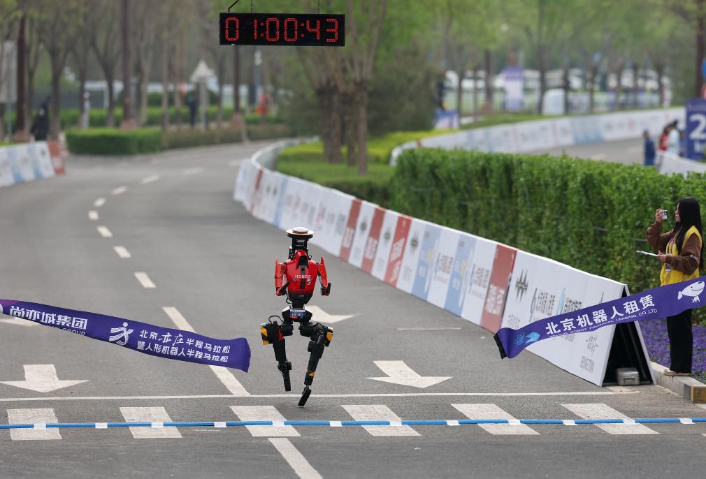 在北京亦庄,这不是一句玩笑话。4月19日,第二届人机共跑半程马拉松赛在此举办。