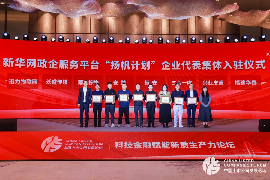 新华网政企服务平台“扬帆计划”企业代表集体入驻仪式。安踏(中国)有限公司、福建恒安集团有限公司、三六一度(中国)有限公司、兴业皮革科技股份有限公司、福建华泰集团股份有限公司、南京棕牛数字科技有限公司、沃盛传媒(福清)有限公司、深圳市迅为物联网有限公司等企业入驻。