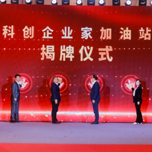 “科创企业家加油站”揭牌仪式。中国工商银行私人银行部总经理李宝权,福建省工商业联合会(总商会)副主席叶善青,新华网首席运营官、新华炫闻(北京)移动传媒科技有限公司董事长孙巍,福建七匹狼实业股份有限公司财务总监洪清海等嘉宾共同揭牌。