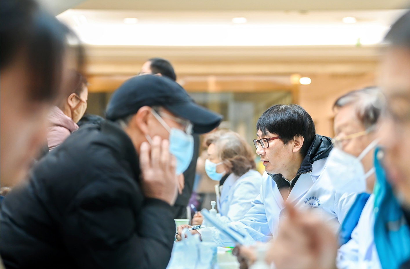 图为首都医科大学附属北京世纪坛医院腹部肿瘤外科主任医师陈永兵在南京鼓楼医院集团宿迁医院平安路院区开展义诊。陈少帅 摄