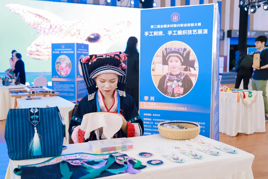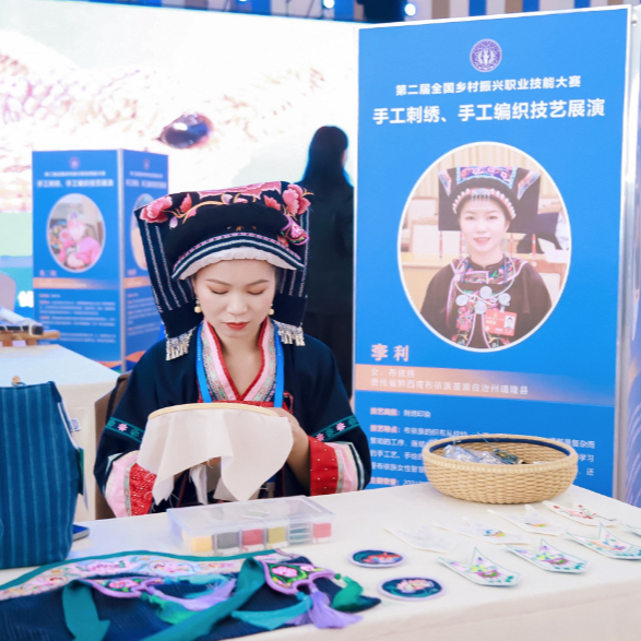 第十四届全国人大代表、贵州布依垚文化发展有限责任公司董事长李利参加第二届全国乡村振兴职业技能大赛。