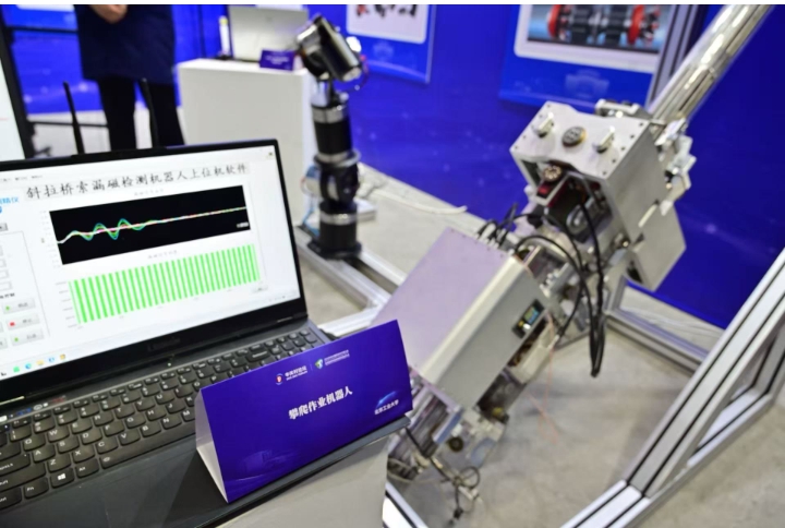 斜拉桥索漏磁检测机器人现场演示。