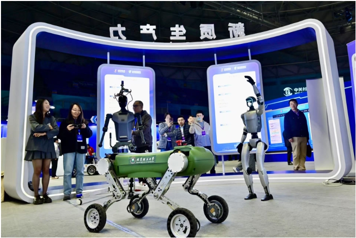 “别看它体积不大,但可以背着100千克的货物连续走8个小时,垂直障碍、多级台阶、大坡度地形等复杂场景,都能轻松应对。”展区空地上,一台轮腿式机器人展示着灵活的越障行走技能。工作人员介绍,这是多模态重载轮腿式高机动平台,由北京理工大学项昌乐院士团队研发,面对复杂地形可以自主决策行驶模式。