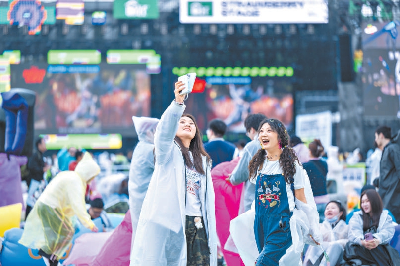北京超级草莓音乐节突遇降雨,也难掩观众的热情与活力。本报记者 潘之望摄