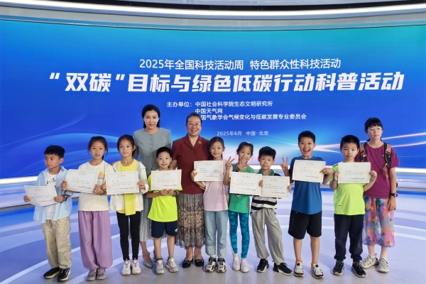 6月14日下午,2025年全国科技活动周特色群众性科技活动——“双碳”目标与绿色低碳行动科普活动,在中国气象局气象影视大楼成功举办。由中国社科院生态文明研究所、中国天气网、中国气象学会气候变化与低碳发展专业委员会联合主办,邀请了大约50位关注气候变化、热心公益的青少年与他们的家长共同参与。