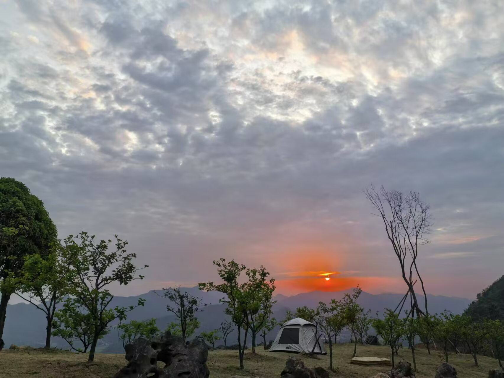 此外,公司积极开拓创新,推出峡谷露营项目,为建设森林生态休闲旅游度假区迈出坚实一步。站在山顶,仿佛踏入陶渊明笔下的世外桃源,清新的空气令人心旷神怡,俯瞰毛铺水库,如诗如画的美景尽收眼底,蓝天、白云、青山、绿水交相辉映,构成一幅绝美的倒影画卷,成为人们放松身心、亲近自然的理想之地。