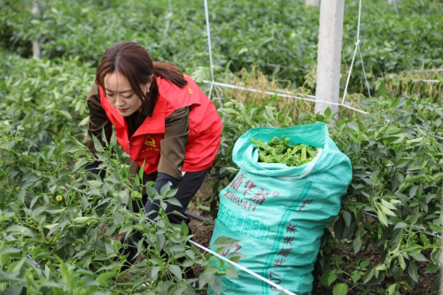 图为志愿者帮助采摘,确保优质辣椒及时上市