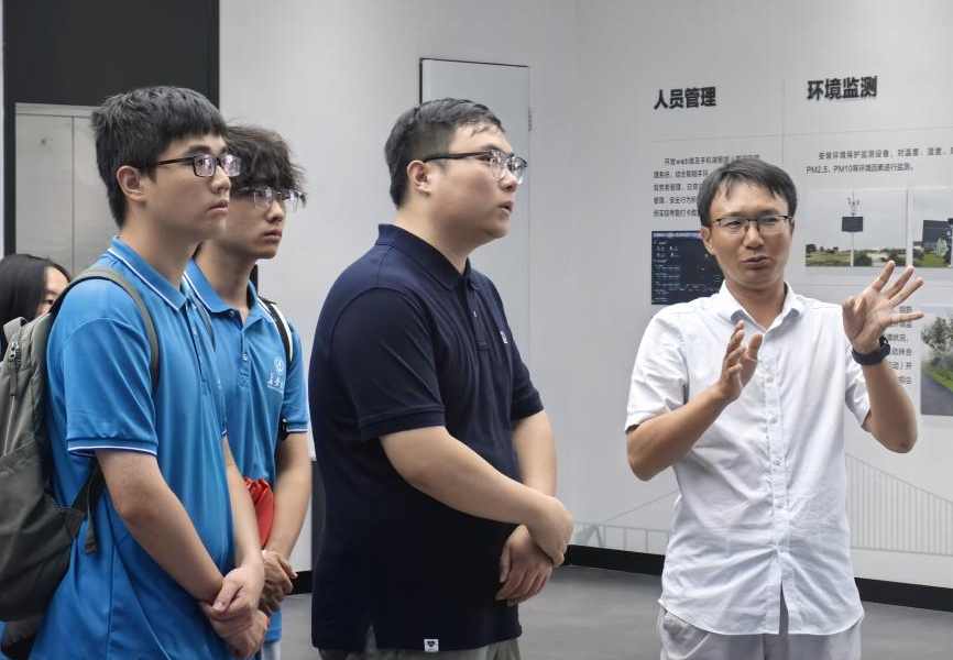 参观结束后,实践队员张煜洋采访了黄修平,他提到了项目施工中遇到的各类挑战——从锚碇建造到索塔安装,技术挑战贯穿施工全程。面对重重考验,项目团队攻坚克难,施工过程安全可控。访谈最后,黄修平勉励同学们,既要扎实学好理论知识,在日常学习中锤炼勇于钻研的品格;更要注重将理论融入实践,以“解决实际问题”作为成长路上最好的老师。
