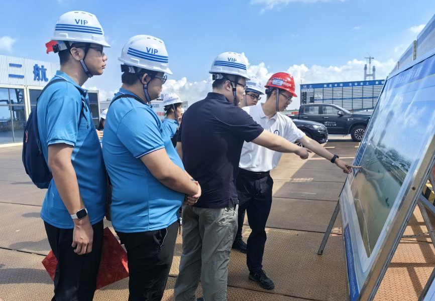 走近施工现场,尚未竣工的主塔已高达260米,与富有建筑美学的辅塔一同,牢牢抓住了实践队员们的视线。继续向前,中交二航局技术中心副总工、张靖皋项目常务副总工黄修平带领队员们走向主塔。黄修平向实践队员们介绍了六大首创关键技术,这些技术为这座世界级悬索桥的建设提供了有力支撑。更令人瞩目的是,该桥一举创下了六项世界纪录。