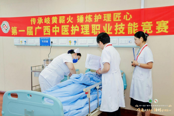 8月24日至25日,第一届广西中医护理职业技能竞赛(决赛)在南宁市举行。本次竞赛以“传承岐黄薪火·锤炼护理匠心”为主题,设置理论考试和技能操作两项内容,其中技能操作包括艾条灸法、壮医药物竹罐疗法等6项中医特色技术,并设置标准化病人情景模拟的团队考核环节。