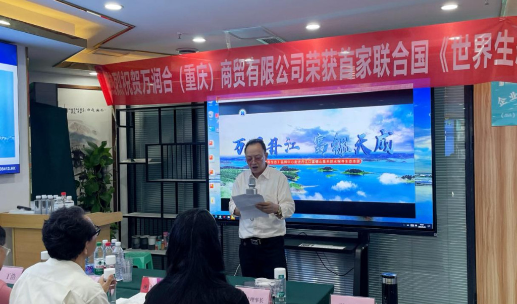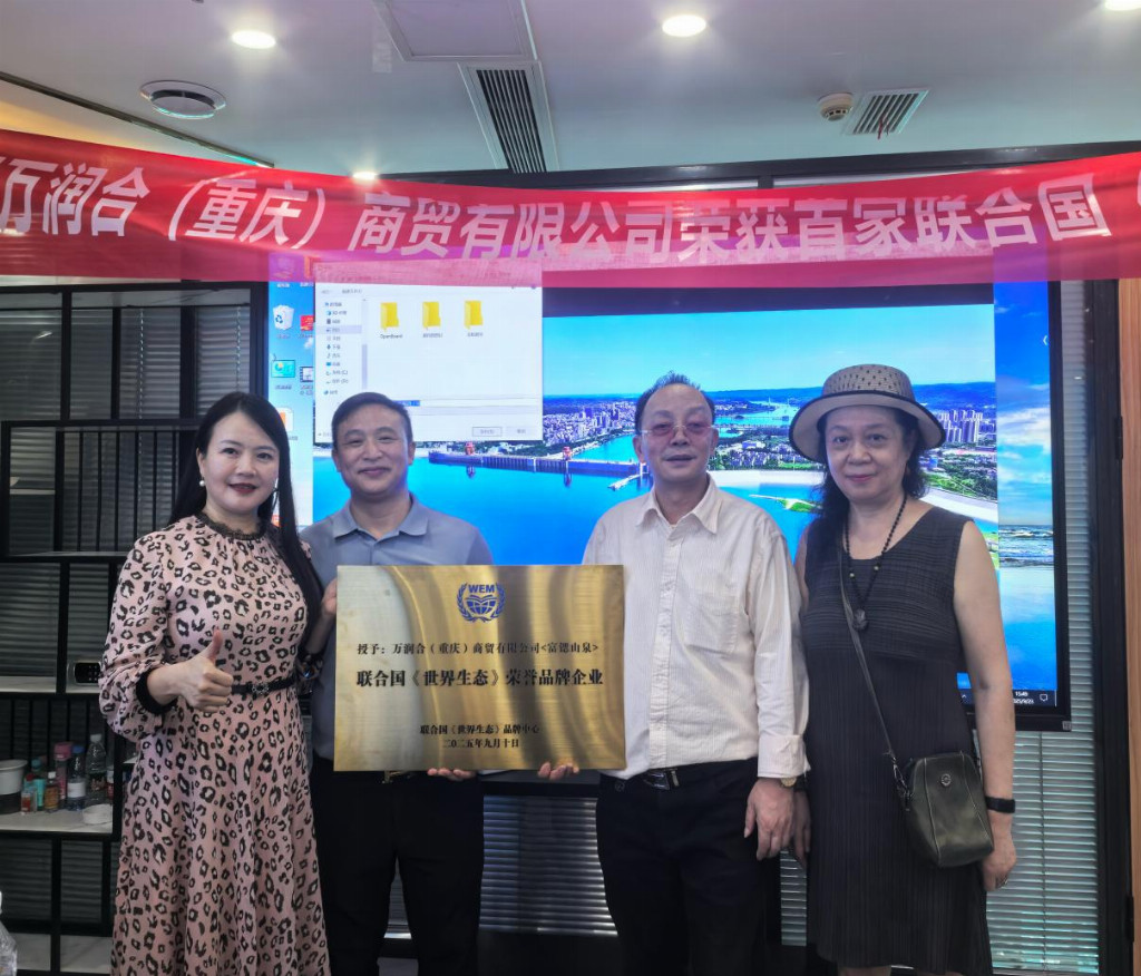 万润合(重庆)商贸有限公司董事长肖京京在仪式上表示:“富锶山泉系列水产品获得联合国《世界生态》品牌荣誉,是企业发展历程中的重大突破,更是全体团队多年深耕生态健康领域的成果见证。这一荣誉不仅是对我们现有工作的肯定,更是未来发展的动力与鞭策。从企业发展角度看,这一认证将帮助我们突破品牌认知壁垒——在国内市场,能进一步强化‘生态优质’的品牌标签,提升消费者信任度与市场竞争力,助力产品在中高端饮用水市场实现份额提升;在国际市场,将凭借《世界生态》的国际背书,降低海外市场准入门槛,为拓展跨境业务、打造国际化品牌奠定基础。同时,这也将促使我们在生产、研发、供应链管理等环节持续升级,推动企业向‘生态化、国际化、高品质’方向转型,更好地践行‘让更多人喝上天然健康好水’的初心。”