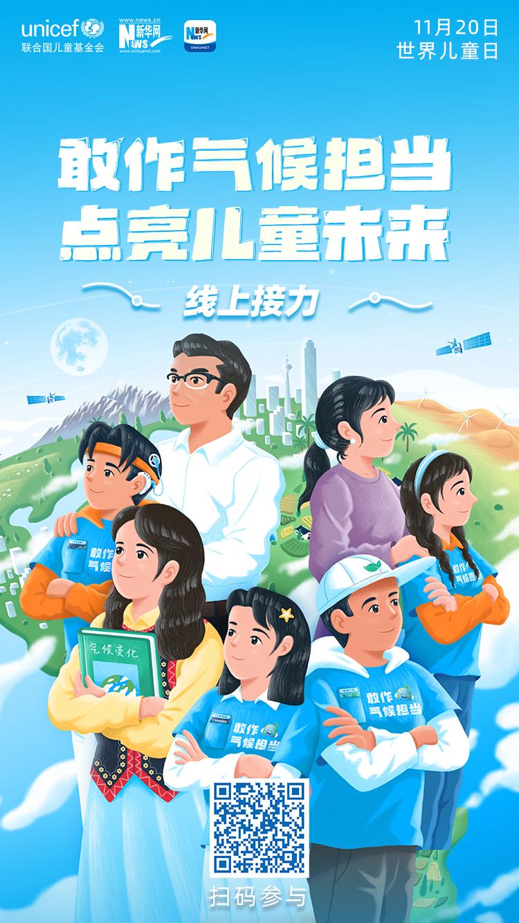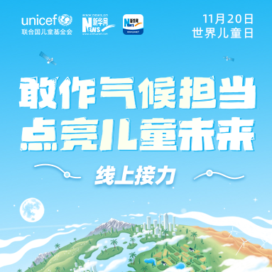 11月20日是“世界儿童日”,今年的主题是“敢作气候担当,点亮儿童未来”。如何更好地应对气候变化,守护我们的地球和孩子们的未来?联合国儿童基金会携手新华网推出“敢作气候担当 点亮儿童未来”线上接力活动,邀请您在线“点亮”应对气候变化的行动建议,还可以参加有奖小调查,快来参与吧!
