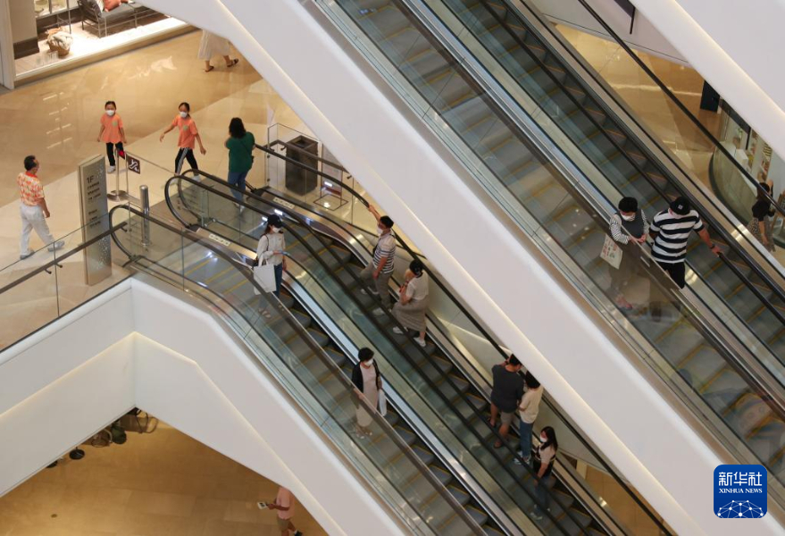 9月24日,人们在韩国京畿道河南市一家商场乘坐扶梯。(新华社记者王婧嫱摄)