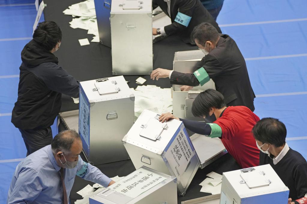10月31日,计票员在日本东京港区打开投票箱。(新华社/共同社)