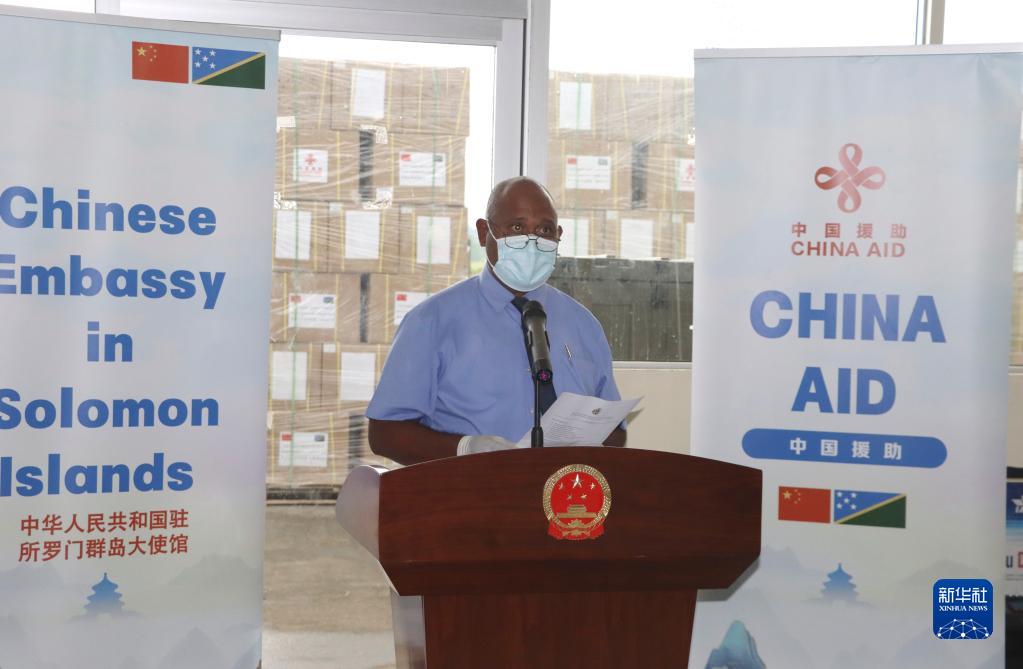 中所双方在机场举行简短、隆重的欢迎仪式。中国驻所罗门群岛大使李明在致辞中表示,当前所罗门群岛政府和人民面临新冠疫情和骚乱影响带来的双重挑战,中方秉持人类命运共同体理念,急所方之所急,积极向所提供抗疫及警用物资援助。