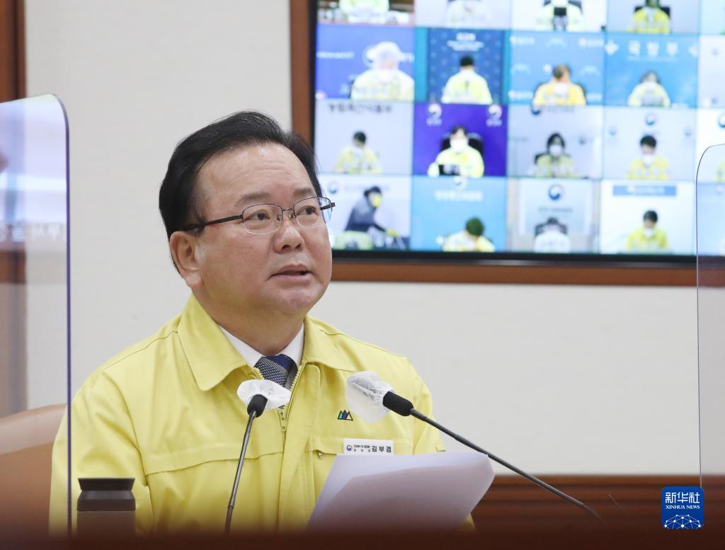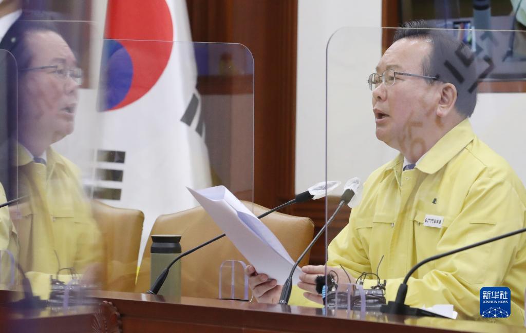 3月2日,在韩国首尔,国务总理金富谦在中央防疫对策本部应对新冠病毒会议上讲话。新华社/纽西斯通讯社