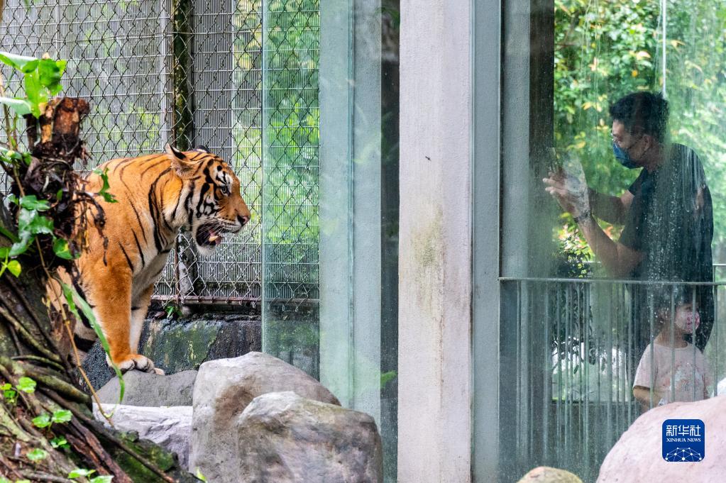 2月27日,在马来西亚吉隆坡附近的国家动物园,马来亚虎“威拉”望着来往的游客。