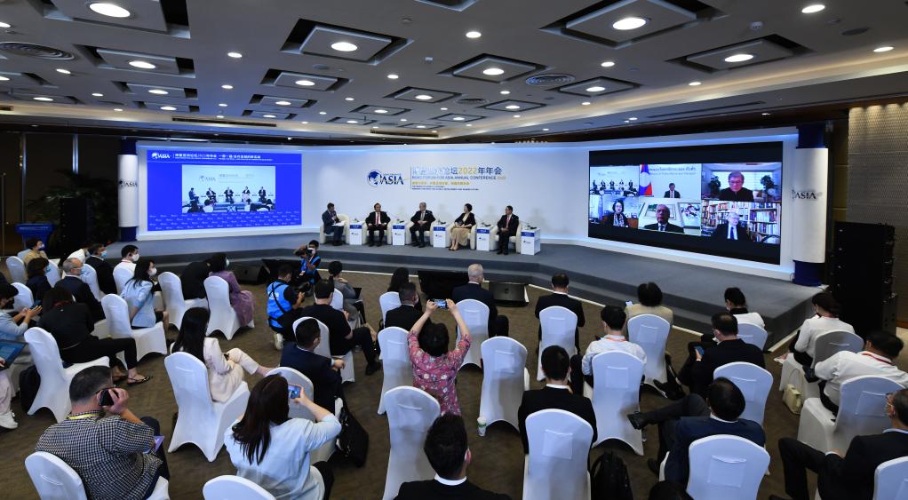 4月21日,博鳌亚洲论坛2022年年会举行“一带一路:合作发展的新实践”分论坛。(新华社记者杨冠宇摄)