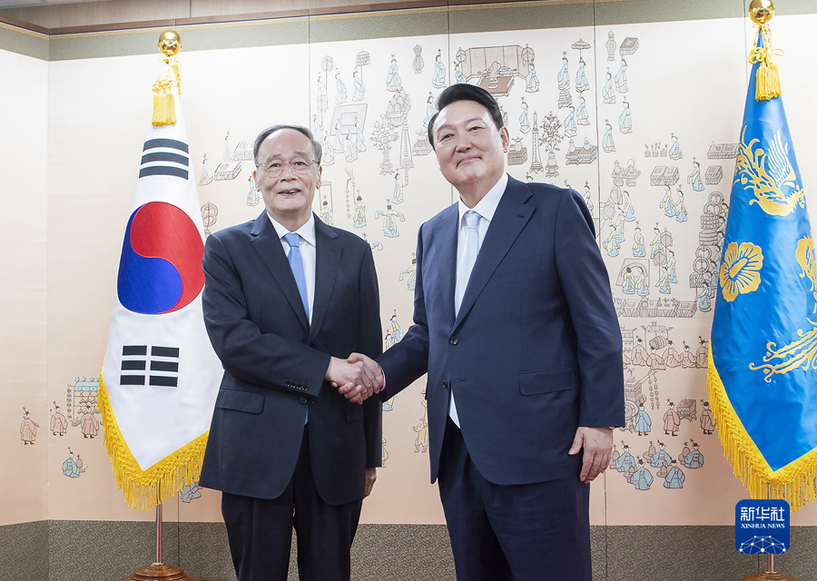 新华社首尔5月10日电(记者张崇防 陆睿)5月10日,应韩国政府邀请,习近平主席特别代表、国家副主席王岐山在首尔出席新任总统尹锡悦就职仪式并同其举行会见。