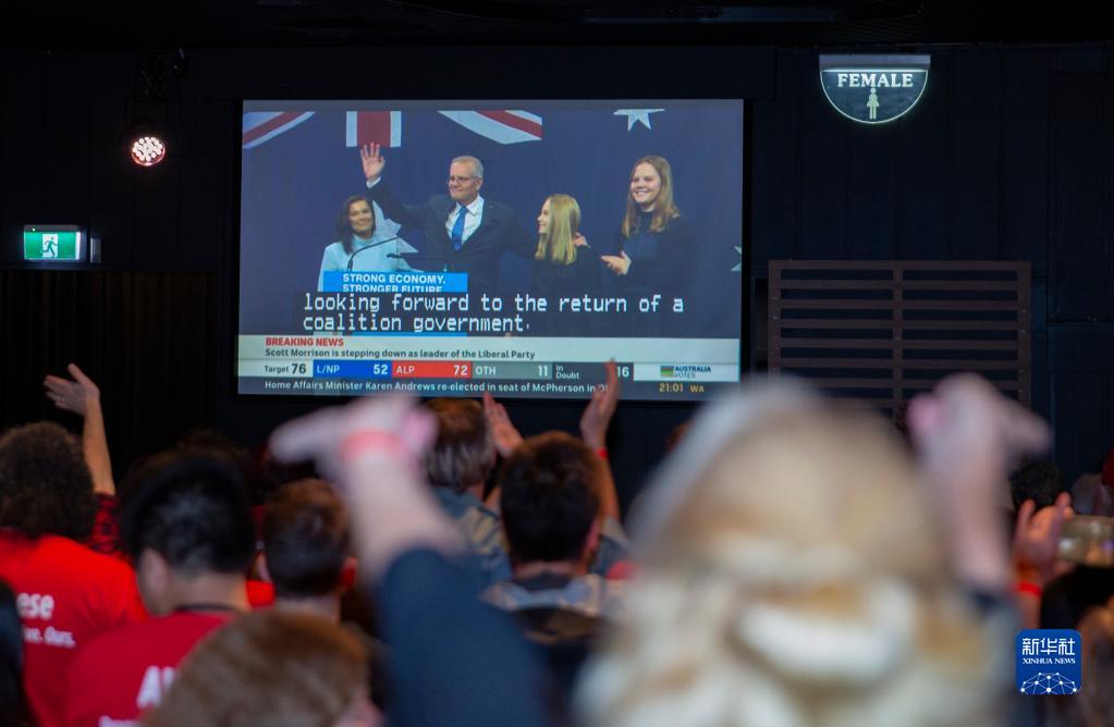 5月21日,在澳大利亚悉尼工党竞选总部,电视画面播放总理莫里森宣布败选画面。新华社记者 白雪飞 摄