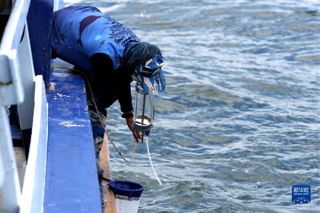 5月11日,一名泰国海洋与海岸资源局工作人员在泰国湾提取水样。新华社记者 王腾 摄