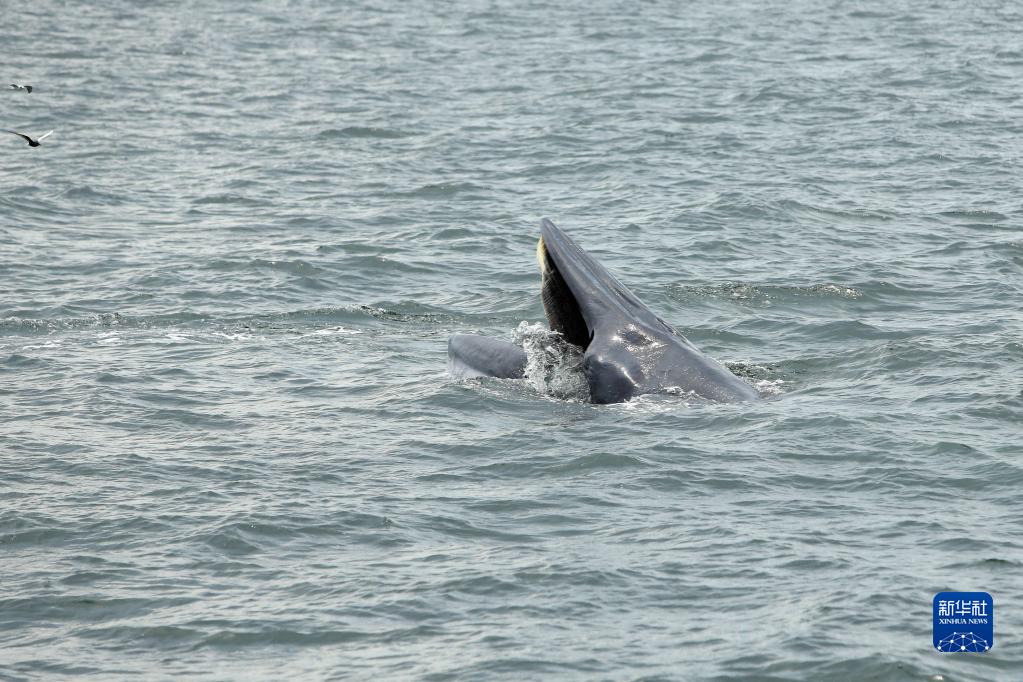 5月11日,一头布氏鲸在泰国湾浮出海面。新华社记者 王腾 摄