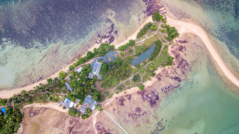 ↑这是6月21日拍摄的泰国罗勇府蒙奈岛海龟保护中心(无人机照片)。
