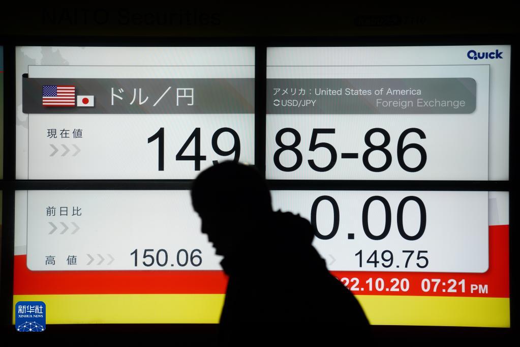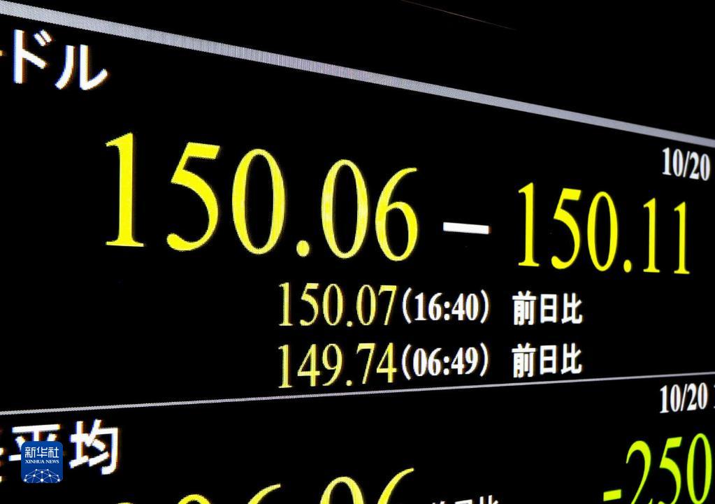 这是10月20日在日本东京拍摄的日元对美元汇率信息显示屏。新华社/共同社