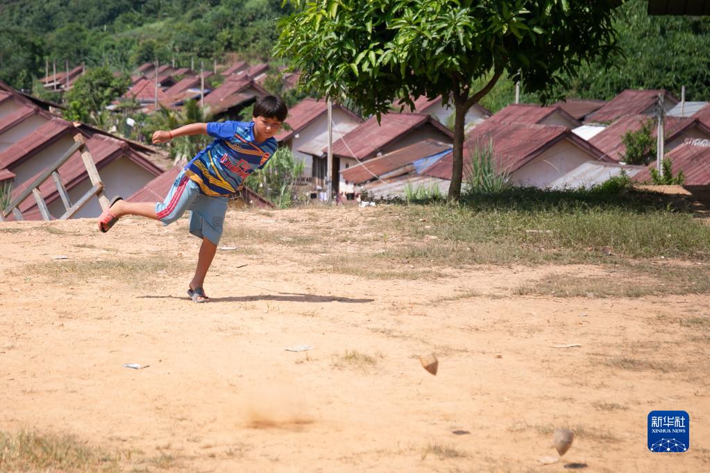 2022年9月27日,在老挝北部丰沙里省,一名儿童在中国电建南欧江流域梯级水电项目七级电站附近的移民新村里玩耍。新华社发(凯乔摄)