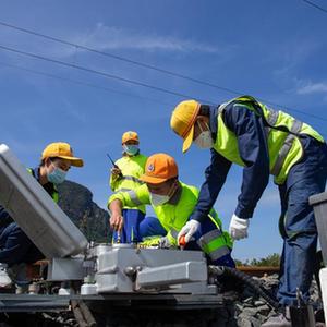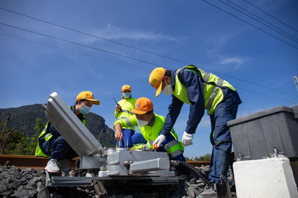 2022年12月1日,在老挝琅勃拉邦,中老铁路双方员工共同维护线路。新华社发(凯乔摄)