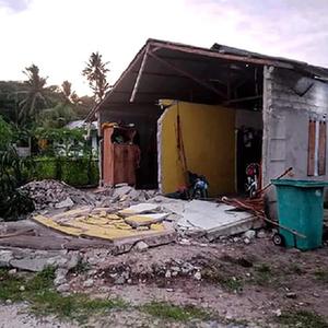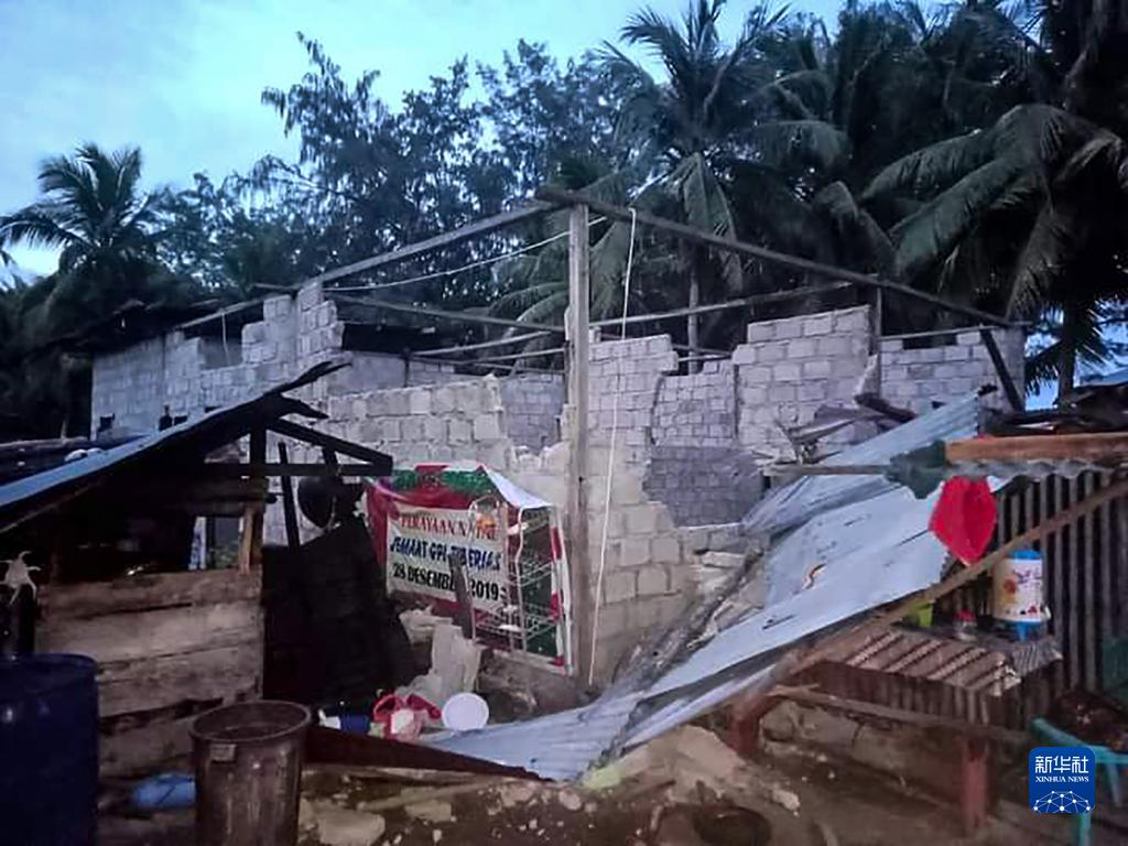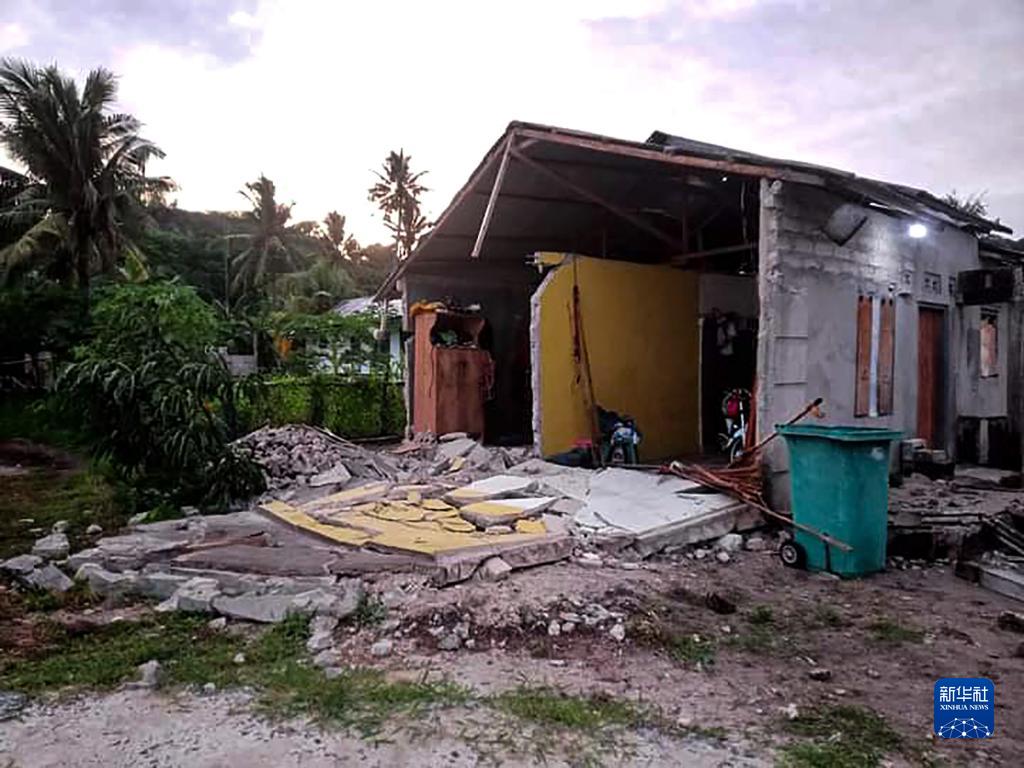 这是1月10日在印度尼西亚马鲁古省拍摄的在地震中受损的房屋。新华社发(印尼国家抗灾署供图)