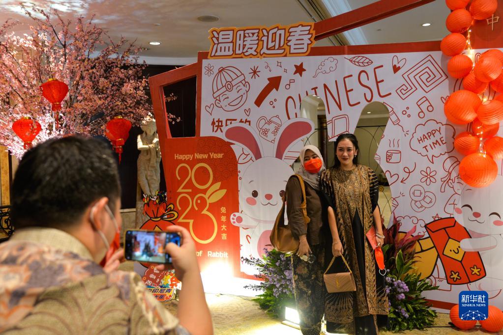 1月14日,在印度尼西亚雅加达,人们在“温暖迎春”中印尼青年过大年活动现场合影。新华社记者 徐钦 摄