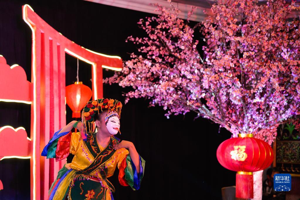 1月14日,在印度尼西亚雅加达,演员在“温暖迎春”中印尼青年过大年活动上演唱。新华社记者 徐钦 摄
