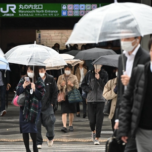 这是2022年11月15日,行人走在日本东京站丸之内出口附近的马路上。新华社发(孙佳林摄)