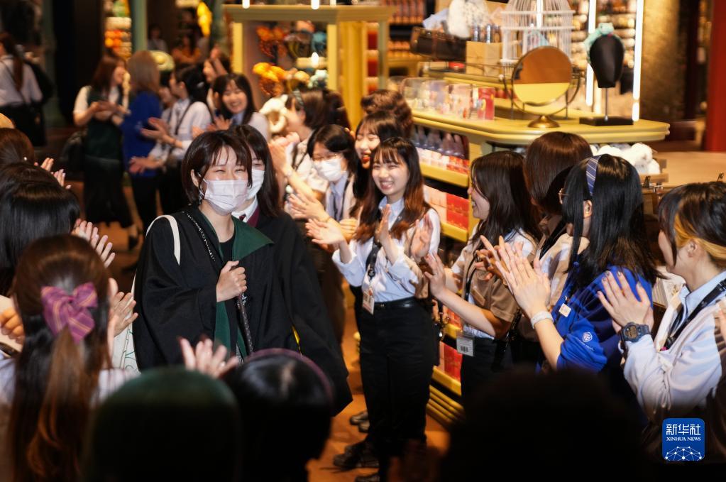 6月16日,在日本东京,哈利波特主题公园的工作人员欢迎游客。