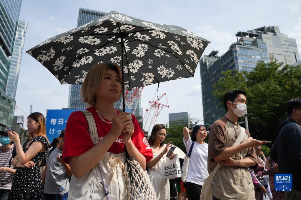 当日,东京迎来高温天气,日本气象协会将东京中暑警戒调至最高级别“危险”。
