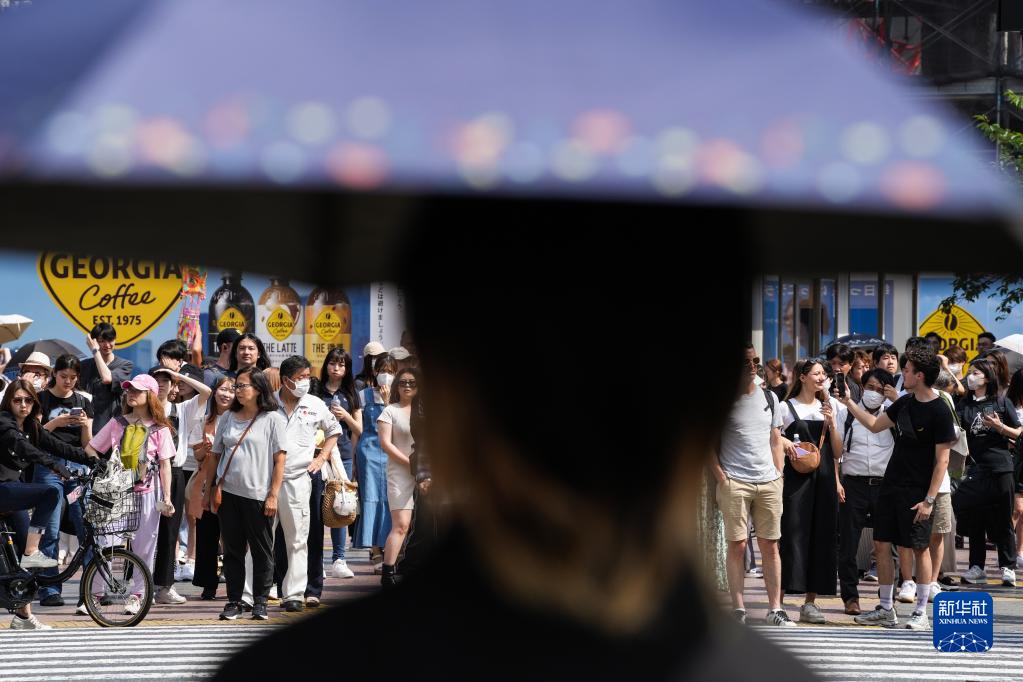 当日,东京迎来高温天气,日本气象协会将东京中暑警戒调至最高级别“危险”。