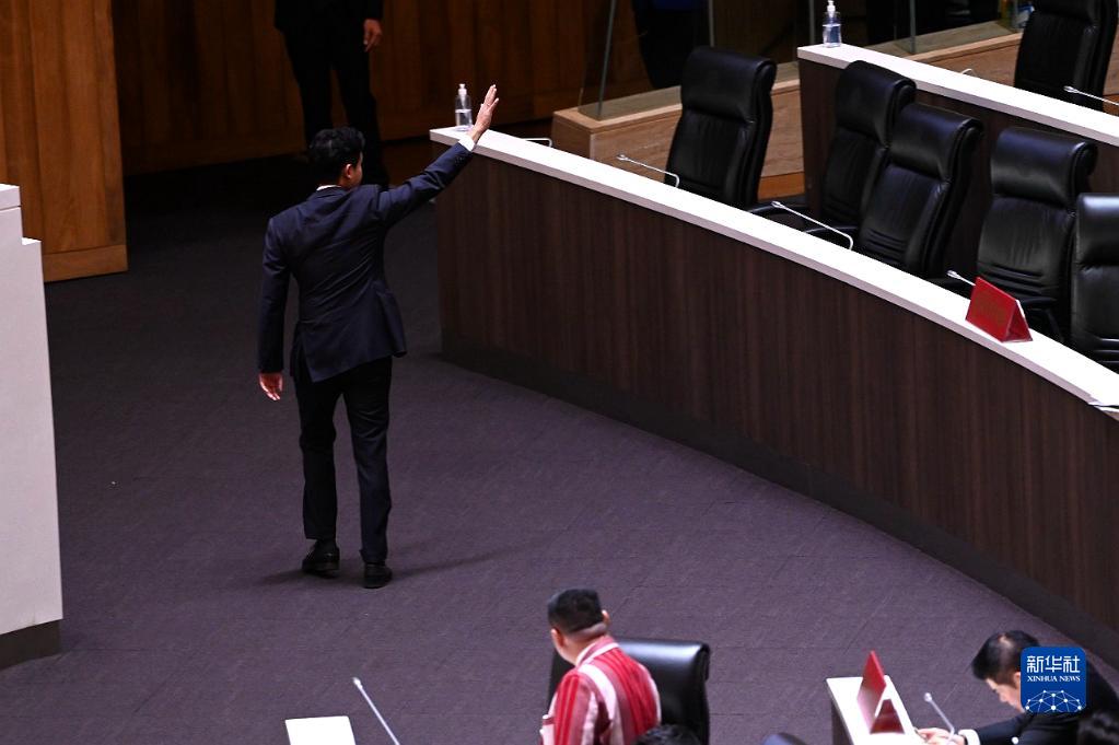 7月19日,在泰国首都曼谷,远进党党魁皮塔离开国会。新华社发(泰国国会供图)