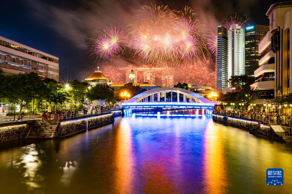 这是8月9日在新加坡国庆庆典上拍摄的烟花。新华社发(邓智炜摄)