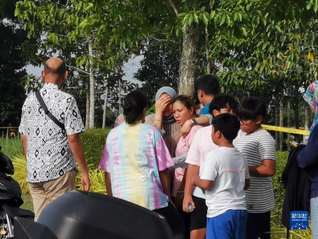 8月17日,在马来西亚雪兰莪州,家属在小型飞机坠毁现场等候消息。新华社/东方日报