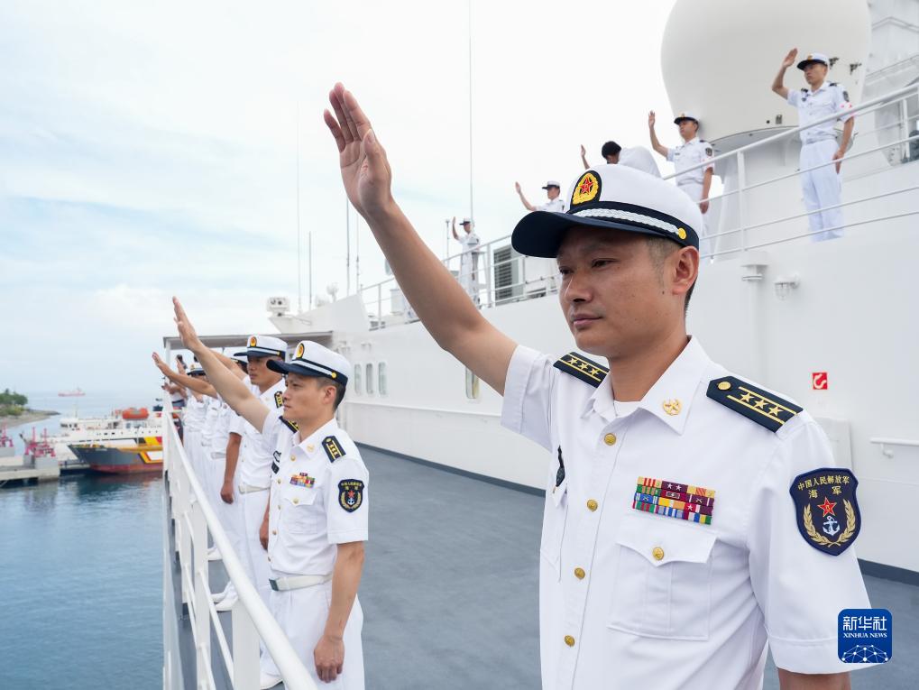 9月10日,中国海军“和平方舟”号医院船驶离东帝汶帝力港。新华社发(桂江波 摄)
