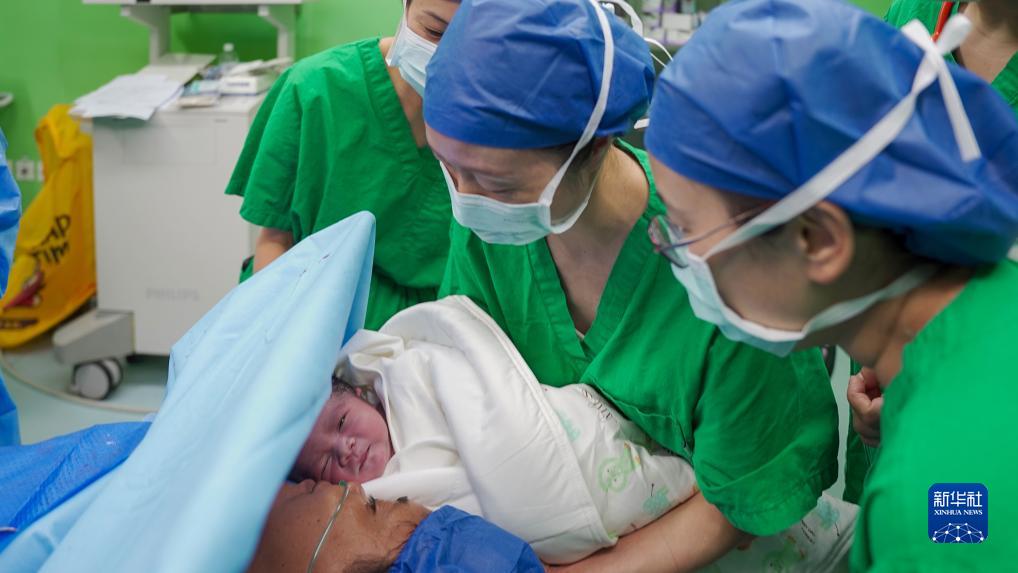 中国海军“和平方舟”号医院船执行“和谐使命-2023”任务中的第3名“和平宝宝”在东帝汶诞生,新生儿与母亲第一次见面(9月5日摄)。新华社发(李珂嘉贺 摄)