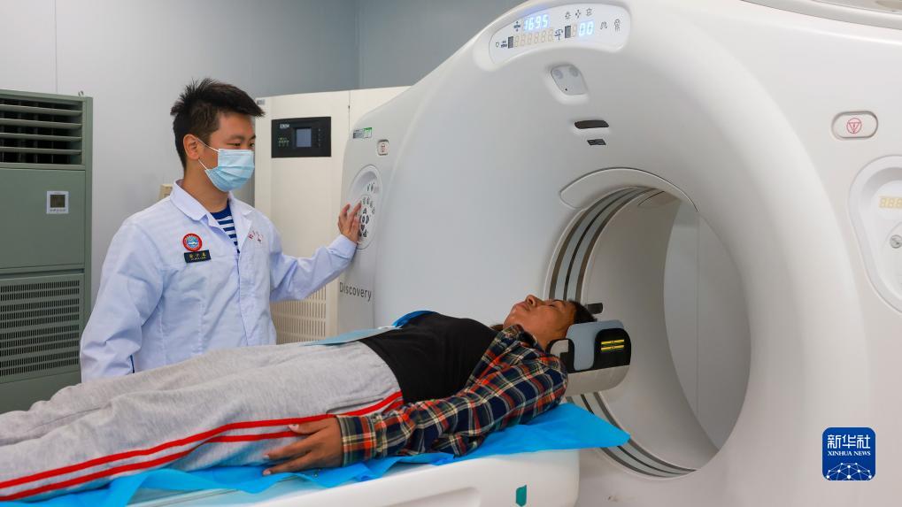 中国海军“和平方舟”号医院船访问东帝汶并开展医疗服务期间,医院船医护人员为当地民众进行CT检查(9月6日摄)。新华社发(陈云飞 摄)