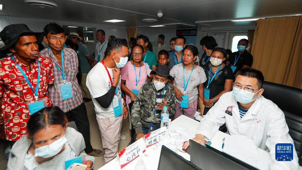 中国海军“和平方舟”号医院船访问东帝汶并开展医疗服务期间,医院船医护人员为当地民众提供医疗服务(9月8日摄)。新华社发(黎宇 摄)