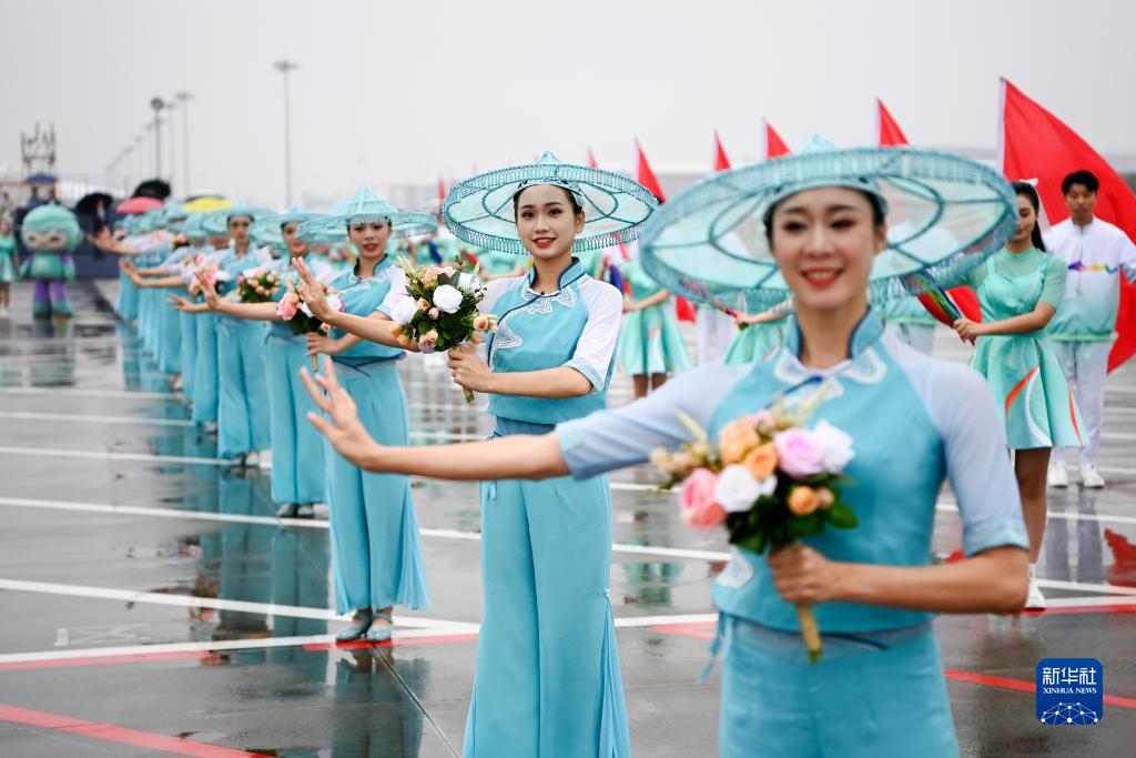 9月23日上午,来华出席杭州亚运会开幕式的韩国总理韩德洙抵达浙江省杭州市。这是欢迎仪式现场。