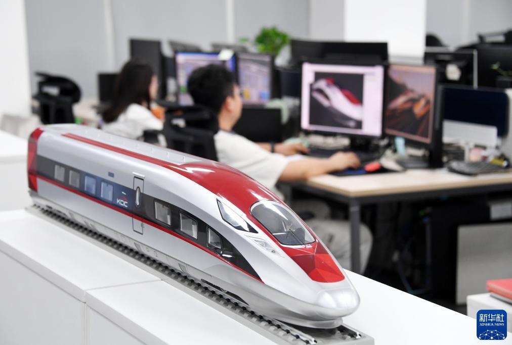 8月29日,在山东省青岛市,中车青岛四方机车车辆股份有限公司雅万高铁动车组设计团队工作人员在工作中。新华社记者 李紫恒 摄
