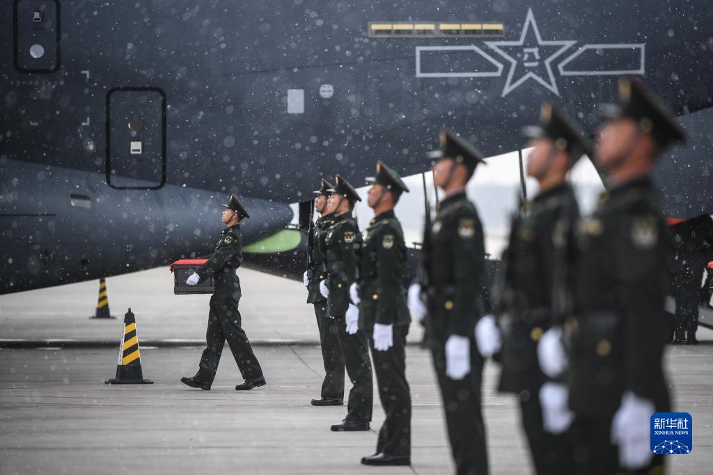 11月23日11时32分许,一架搭载着25位志愿军烈士遗骸的中国空军运-20运输机降落在沈阳桃仙国际机场。第十批在韩中国人民志愿军烈士遗骸回到祖国怀抱。