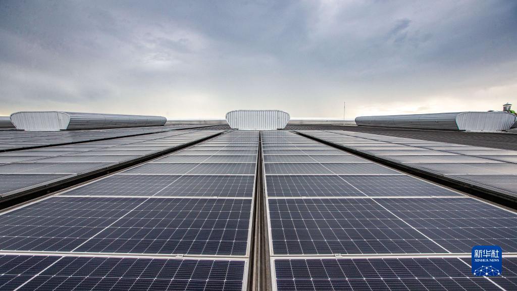 这是11月7日在泰国春武里府拍摄的工厂屋顶光伏发电项目的光伏发电板。